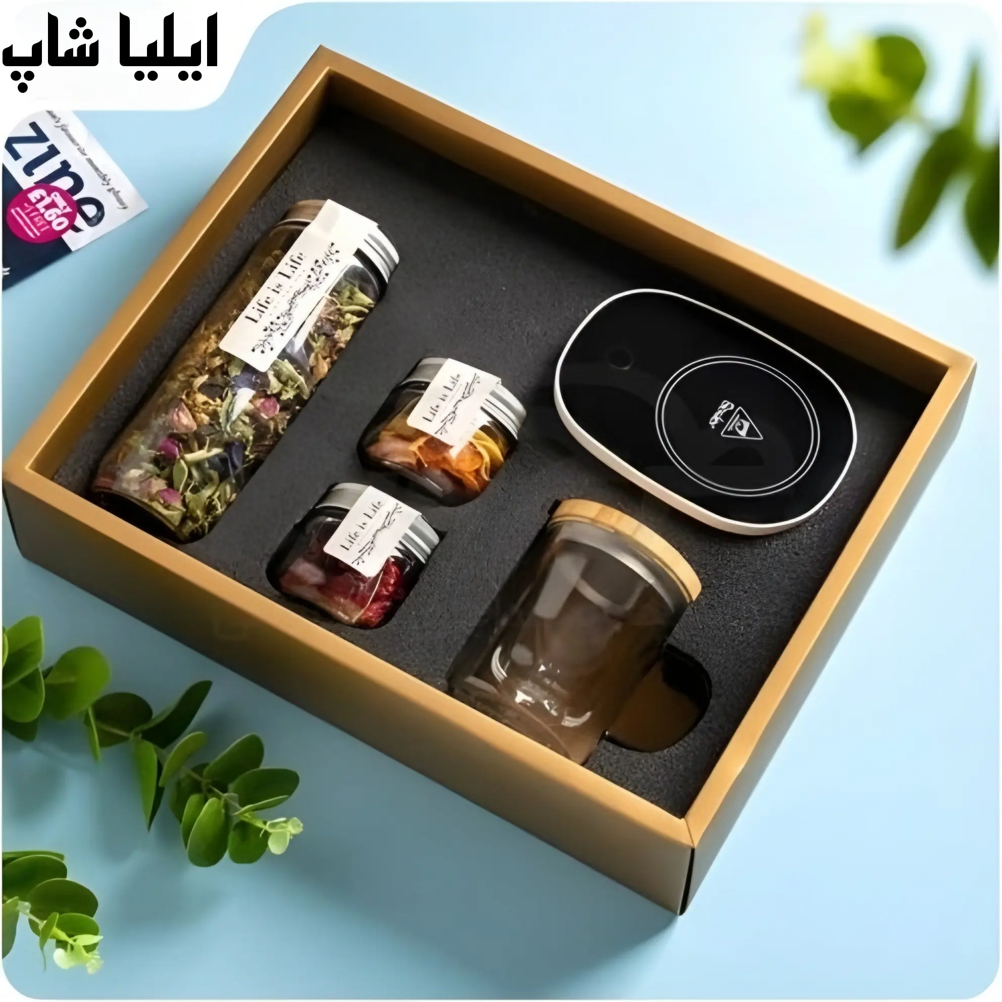 اگر بهدنبال یک هدیه خاص و متفاوت برای شب یلدا هستید، این ست دمنوش و ماگ حرارتی دقیقاً همان چیزی است که یک برند حرفهای انتخاب میکند. ترکیب دمنوشهای خوشعطر، ماگ شیشهای دربدار و وارمر برقی، در یک باکس لوکس—هم ظاهر شیک دارد و هم کاربرد روزمره و ارزشافزوده تبلیغاتی.