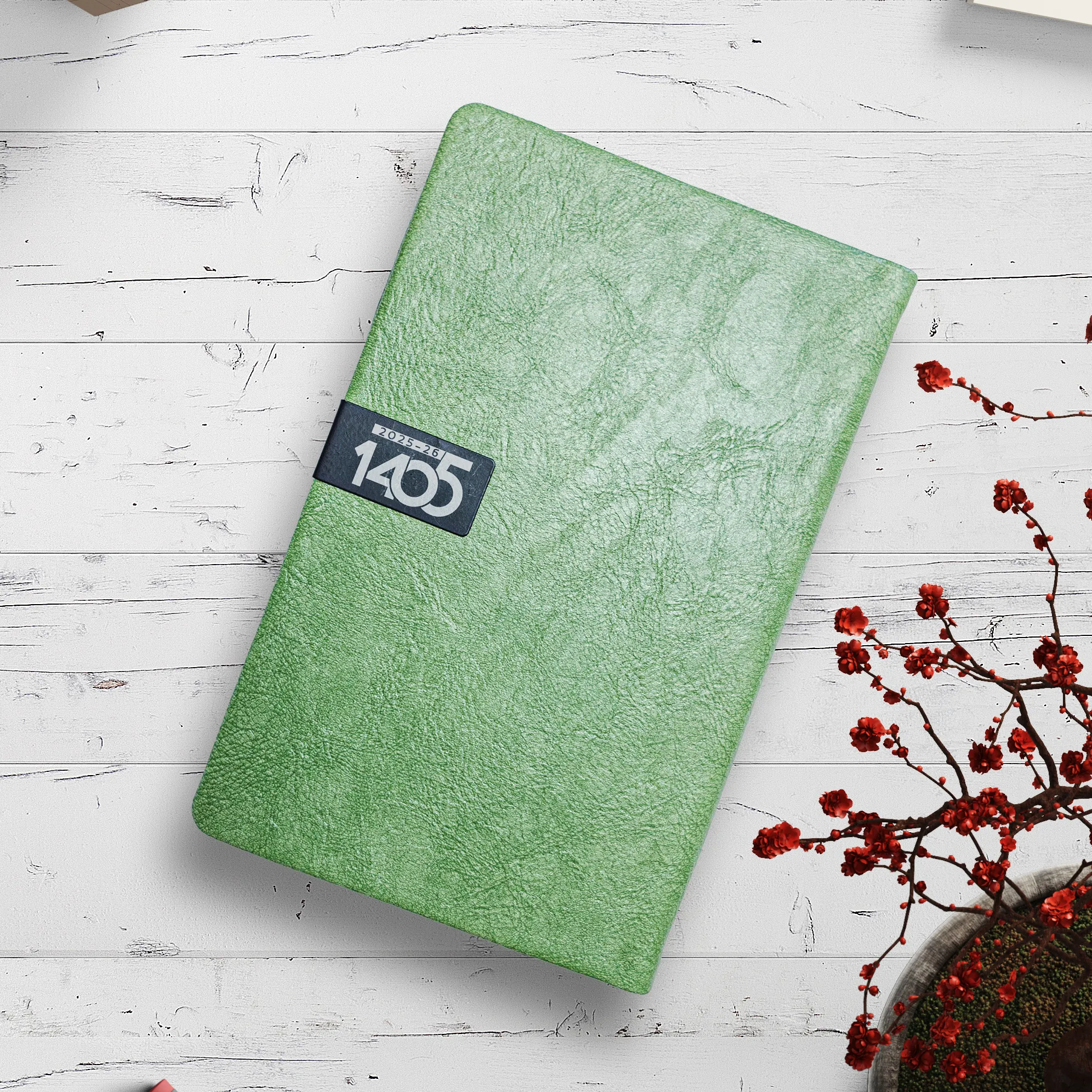 سالنامه ۱۴۰۵ با جلد سبز چرمی، یک انتخاب شیک و حرفهای برای کسبوکارها و استفاده شخصی است. این سررسید با طراحی جذاب، کیفیت بالای جلد و دوخت، و کاغذ باکیفیت تولید شده و گزینهای عالی برای هدایای تبلیغاتی سازمانی محسوب میشود